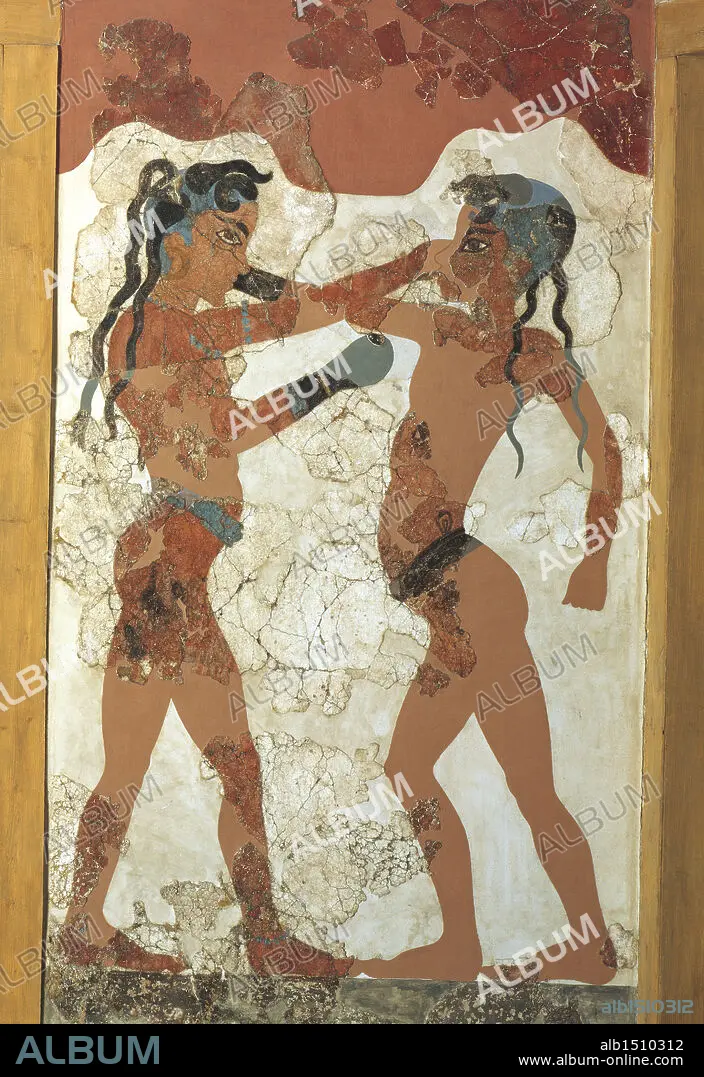 Caption: Greek civilization, 16th century b.C. Fresco depicting young boxers. From Akrotiri, Thera Island, Santorini, Greece.