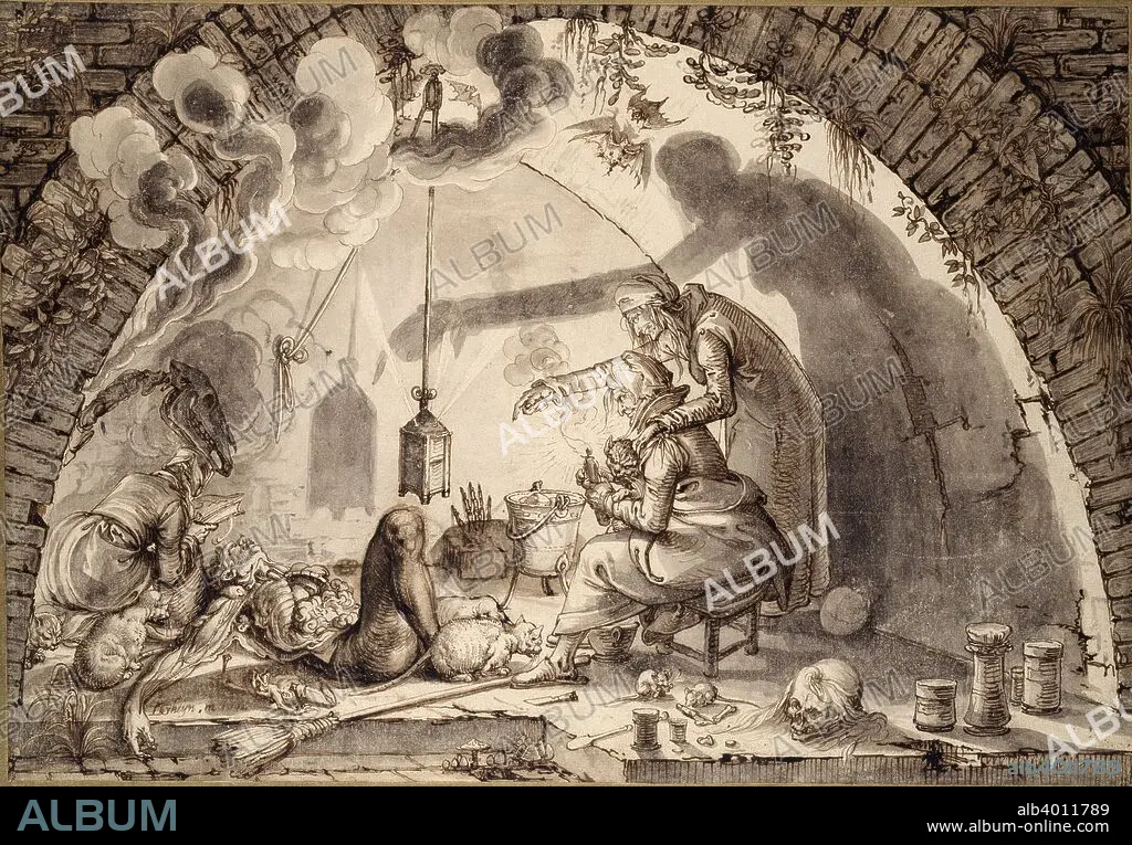 A Witches' Kitchen, c1600. Dimensions: height x width: sheet 28 x 40.8 cm