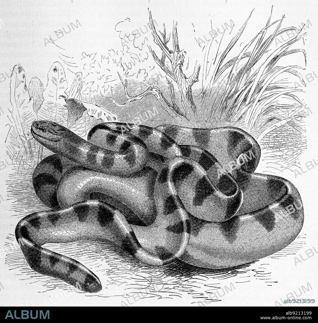 Caption: Reptiles, Striped snake, Hydrophis cyanocinctus belongs to the sea snakes within the family of elapid snakes (Elapidae), Historical, digitally restored reproduction from a 19th century original