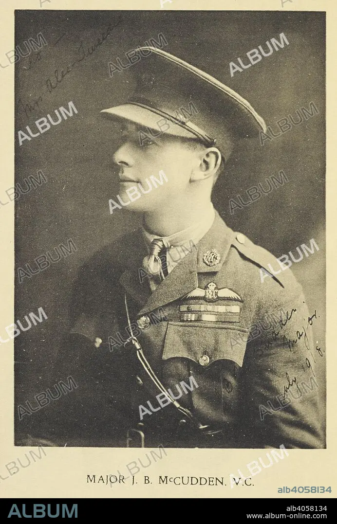Caption: Major J.B. McCudden, V.C.' James Thomas Byford McCudden VC, DSO & Bar, MC & Bar, MM (28 March 1895 – 9 July 1918). A fighter pilot of the First World War, he was recipient of the Victoria Cross. With his six British medals and one French one, McCudden received more medals for gallantry than any other airman of British nationality serving in the First World War. At his death he had amassed 57 victories making him the seventh highest scoring ace of World War I. . Flying Fury. London : John Hamilton, 1930. Source: 09081.d.31 frontipiece.