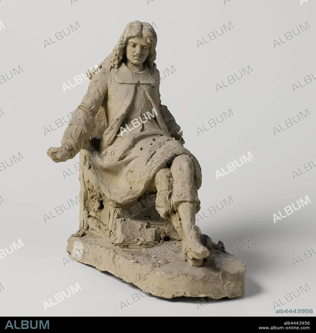 Caption: Design for a statue of Moliere, Eugène Lacomblé, 1800 - 1900, clay, h 25.5 cm × w 23.9 cm × d 17.2 cm