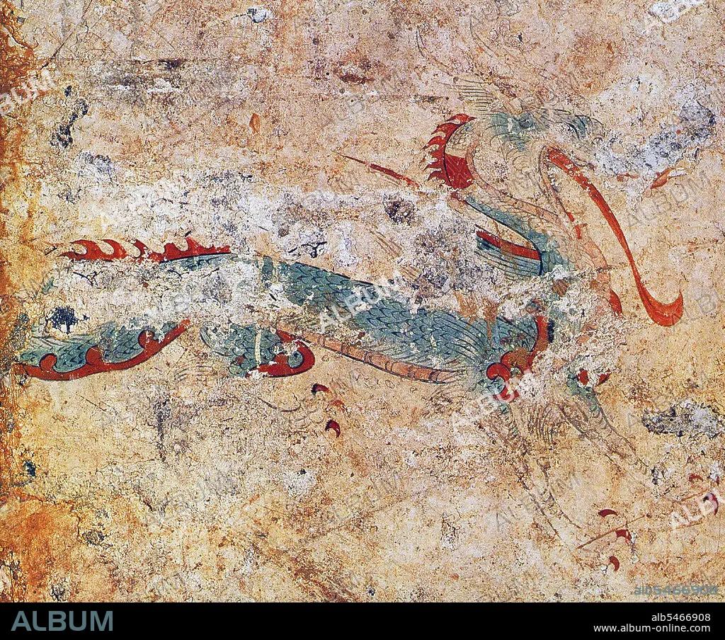 Title: Mural of a dragon, Takamatsuzuka Tomb.