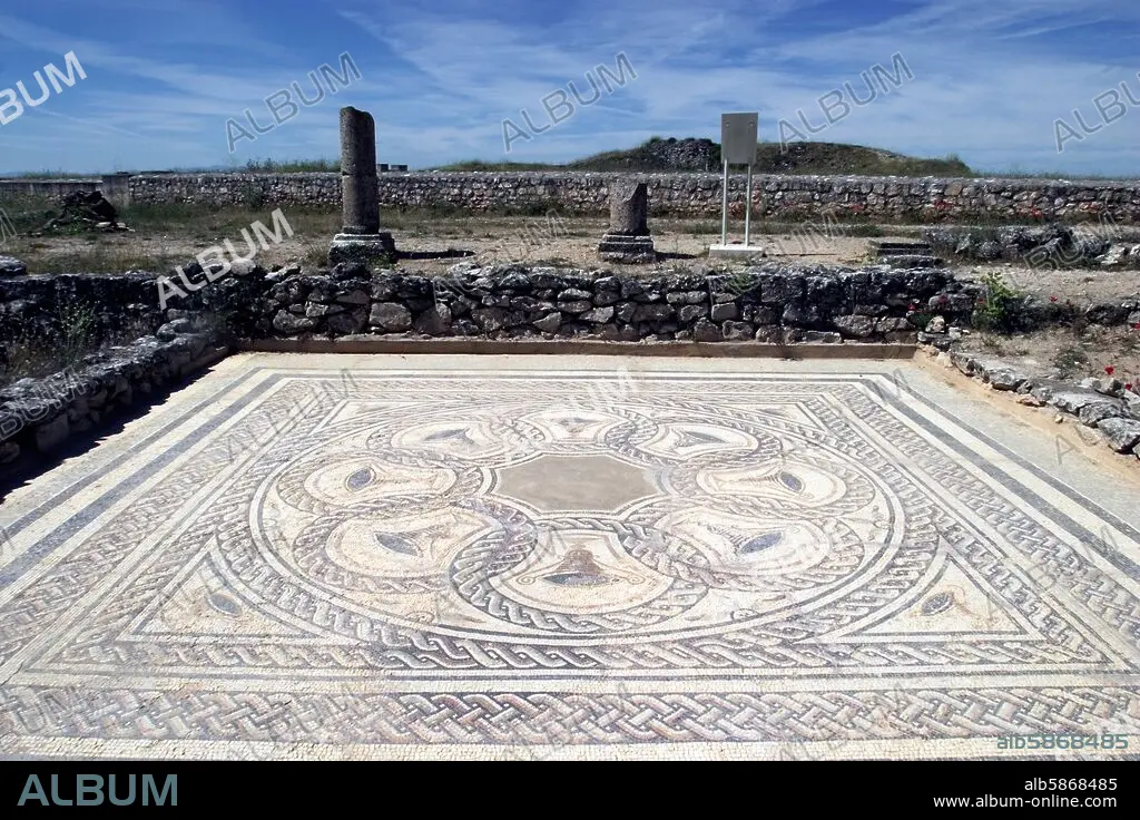 Caption: ruinas romanas de Clunia; mosaicos de zona de viviendas