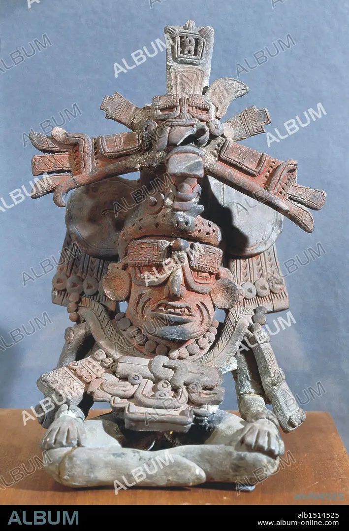Caption: Zapotec civilization, Mexico, 6th century A.D. Anthropomorphic clay funerary urn depicting the Old God, Monte Alban style.
