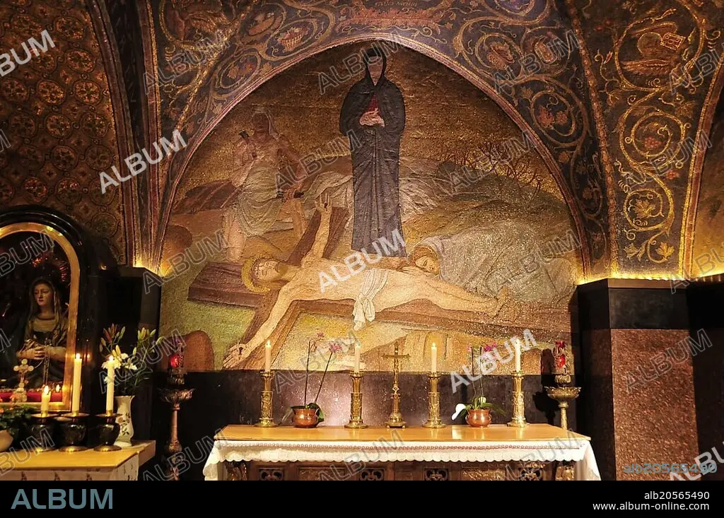 Caption: Altar next to the Golgotha, the place where Christ supposedly died on the Cross, Church of the Holy Sepulchre, Jerusalem, Israel, Middle East, Orient