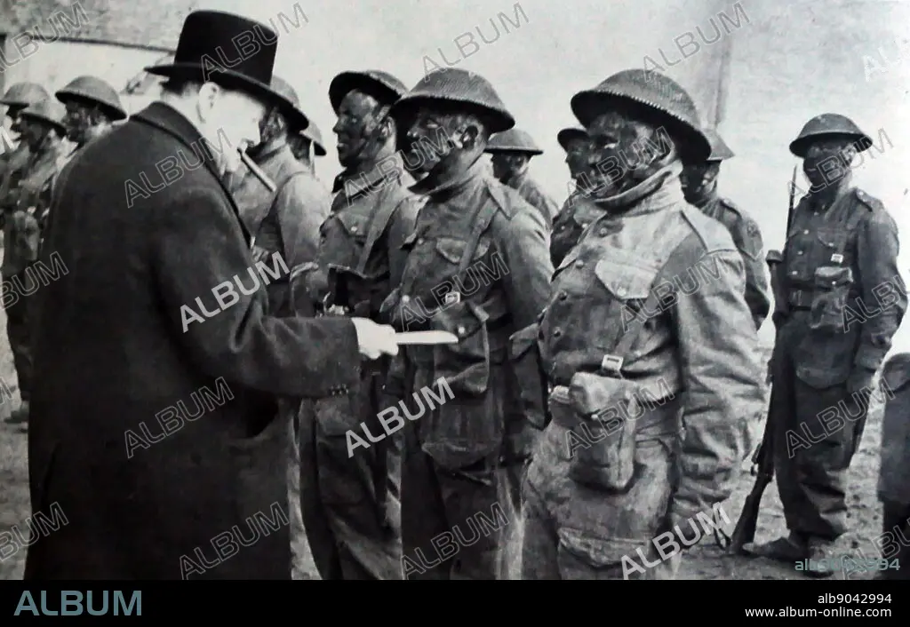 Caption: Photograph of Winston Churchill inspecting commandos. Sir Winston Leonard Spencer-Churchill (1874-1965) a British politician and Prime Minister of the United Kingdom. Dated 20th Century