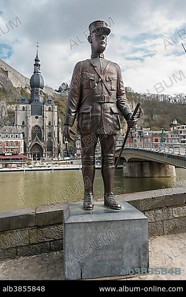 Sculpture Charles de Gaulle, 1890-1970, wounded on the bridge at Dinant on 15 August 1914, First World War, Dinant, Wallonia, Belgium