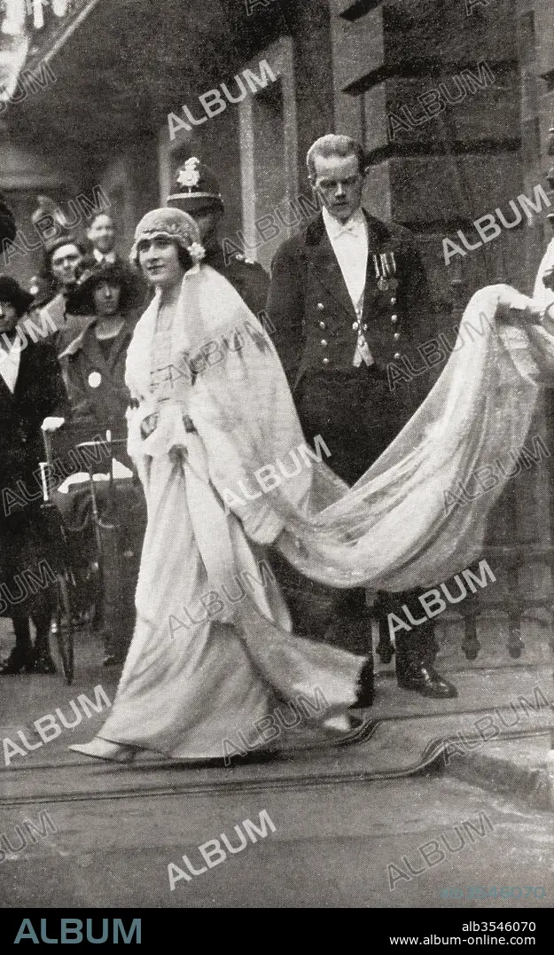 Caption: Elizabeth Angela Marguerite Bowes-Lyon, 1900 –2002. Future Queen Elizabeth, The Queen Mother. Wife of King George VI and the mother of Queen Elizabeth II. Seen here on her wedding day in 1936. From The Duchess of York, published c.1928.