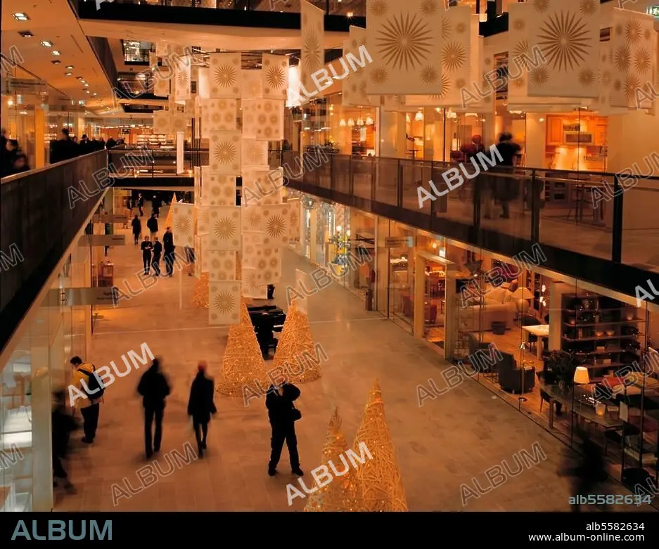 Berlin-Charlottenburg, stilwerk Design Center, Kantstraße 17-20 / Uhlandstraße 9-11. (built 1998/99; architects: Novotny, Mähner & Assoziierte). Inner courtyard with Christmas decorations. Photo, December 1999.