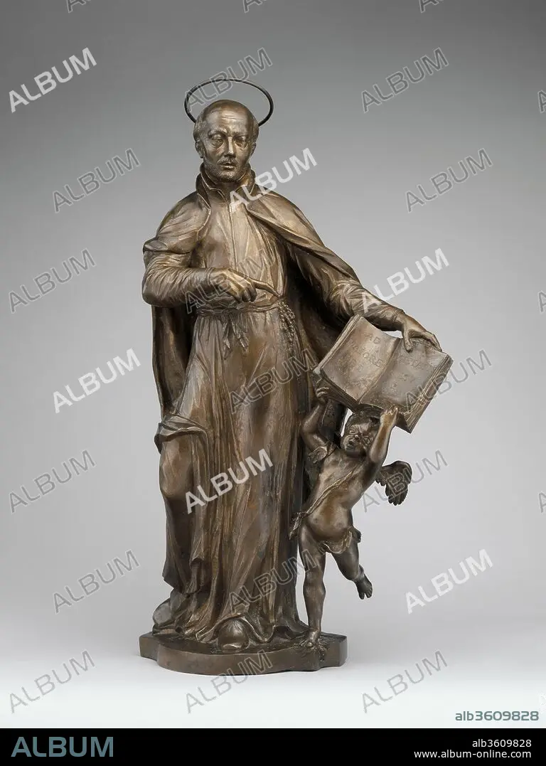 Saint Ignatius Loyola with an Angel Holding a Book Inscribed with the Motto of the Society of Jesus. Culture: Italian, Venice. Dimensions: Overall (confirmed): H. 24 5/8 x W. 13 7/8 x D. 4 5/8 in., 32lb. (62.5 x 35.2 x 11.7 cm, 14.5151kg). Maker: Francesco Bertos (Italian, 1678-1741). Date: ca. 1720-25.