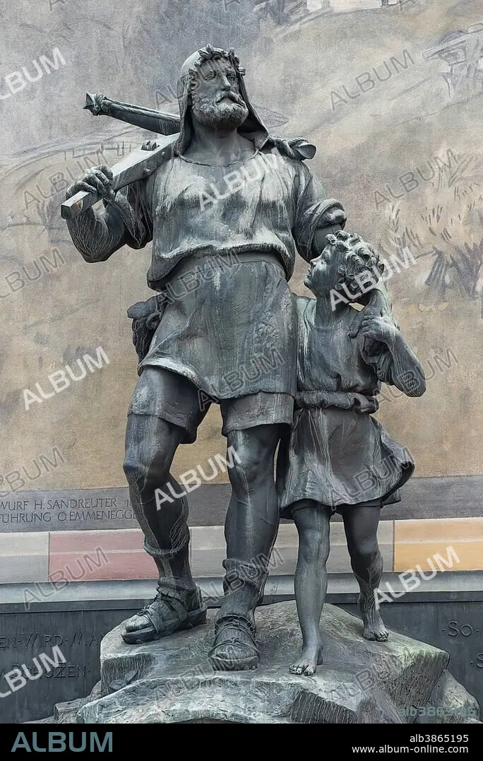 Caption: Wilhelm Tell monument, inaugurated in 1895, sculptor Richard Kissling, Altdorf, Uri, Switzerland, Europe