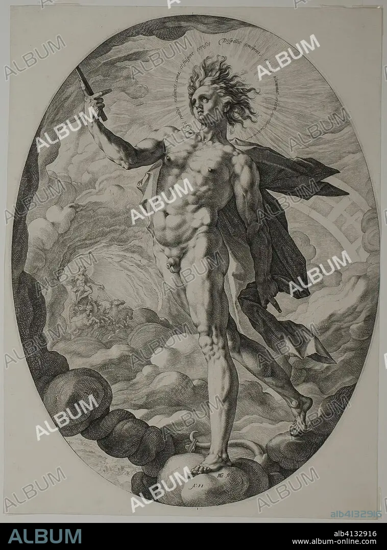 Caption: Apollo. Hendrick Goltzius; Dutch, 1558-1617. Date: 1588. Dimensions: 350 x 263 mm (image/plate); 360 x 264 mm (sheet). Engraving in black ink on off-white laid paper. Origin: Netherlands.