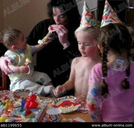 Caption: MICHAEL JACKSON with his son PRINCE MICHAEL JACKSON II (BLANKET) during his first birthday party celebrating with JAROD MALNIK (far left), MICHAEL JOSEPH JACKSON, JR. (PRINCE MICHAEL) second right, and PARIS MICHAEL KATHERINE JACKSON, right. Exact date unknown.
