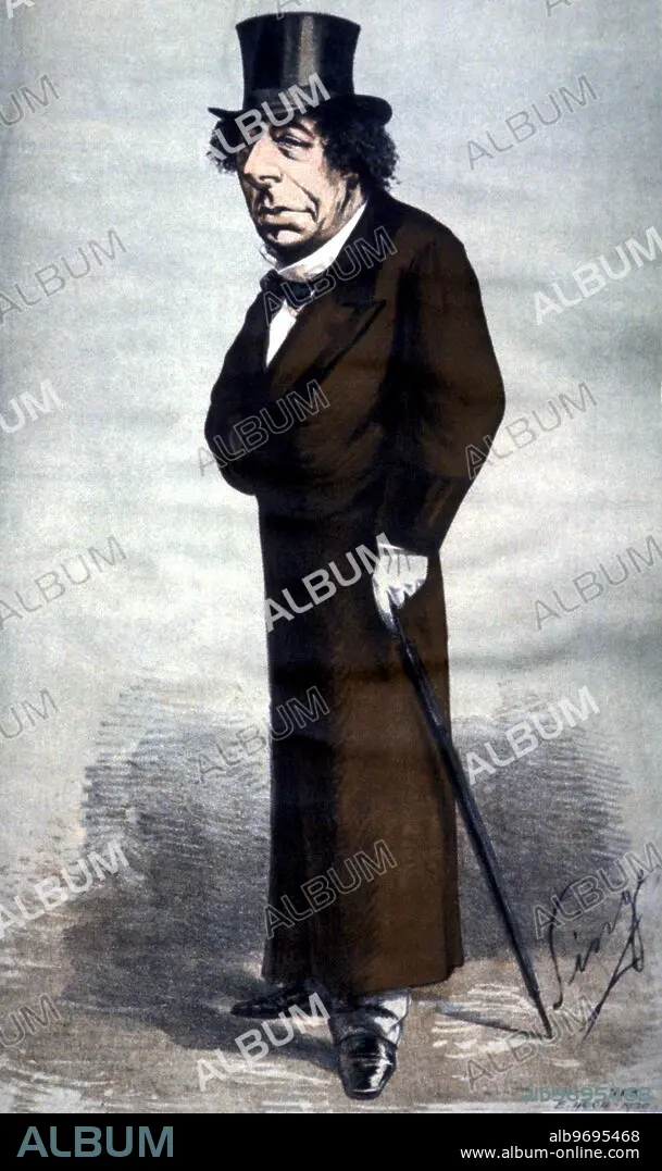 Caption: Benjamin D'Israeli. Disraeli, Benjamin (1st Earl of Beaconsfield) English author and politician; wrote novels "Vivian Grey" 1826, "Sybil" 1845, "Tancred" 1847; British chancellor of the exchequer 1852, 1858-1859, 1866-1868; British prime minister 1868, 1874-1880 (1st Jewish prime minister); political opponent of William Gladstone _1804-1881