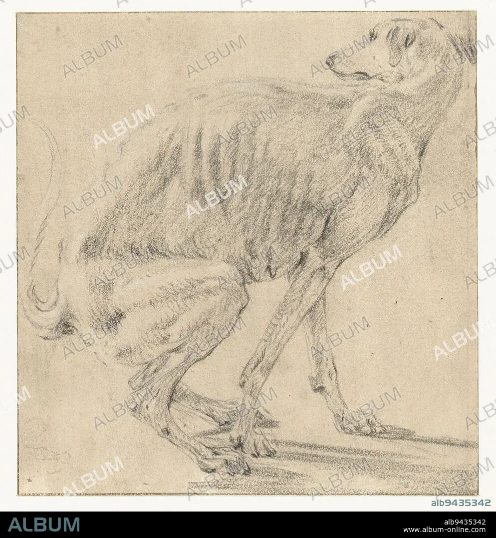 Caption: Seated dog, relieving itself, seen from the side, Frans Snijders, 1589 - 1657, draughtsman: Frans Snijders, 1589 - 1657, prepared paper, h 170 mm × w 163 mm