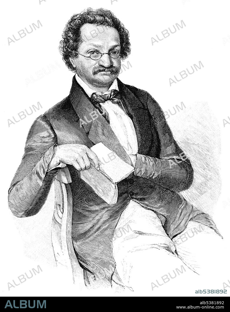 Caption: Historical illustration from the 19th century, depiction of Moritz Gottlieb Saphir or Moses Saphir, 1795 - 1858, an Austrian writer and journalist