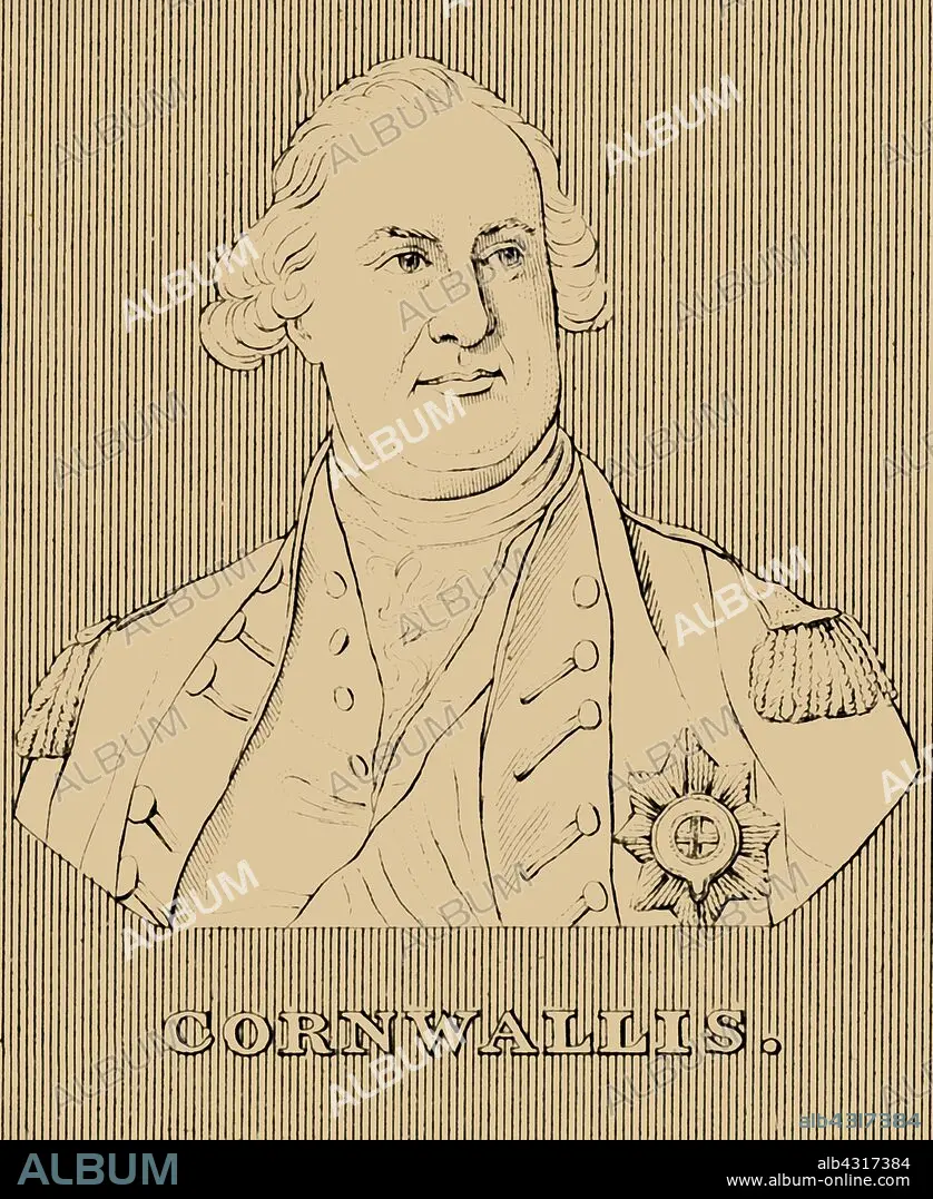 Caption: 'Cornwallis', (1738-1805), 1830. Charles Cornwallis (1738-1805) British Army general and official, educated at Eton and Cambridge, remembered for his part in the American War of Independence. From "Biographical Illustrations", by Alfred Howard. [Thomas Tegg, R. Griffin and Co., J. Cumming, London, Glasgow and Dublin, 1830]