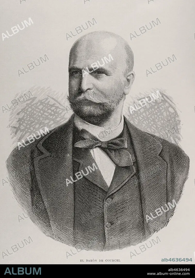 Alphonse Chodron de Courcel (1835-1919). Diplomático y político francés. Representante de la República francesa en la Conferencia de Berlín. Grabado por E. Gimeno. El Congo y la Creación del Estado Independiente de este nombre. Historia de los Trabajos y Exploraciones Verificados, por Enrique M. Stanley. Editada en Barcelona, hacia 1890. España.