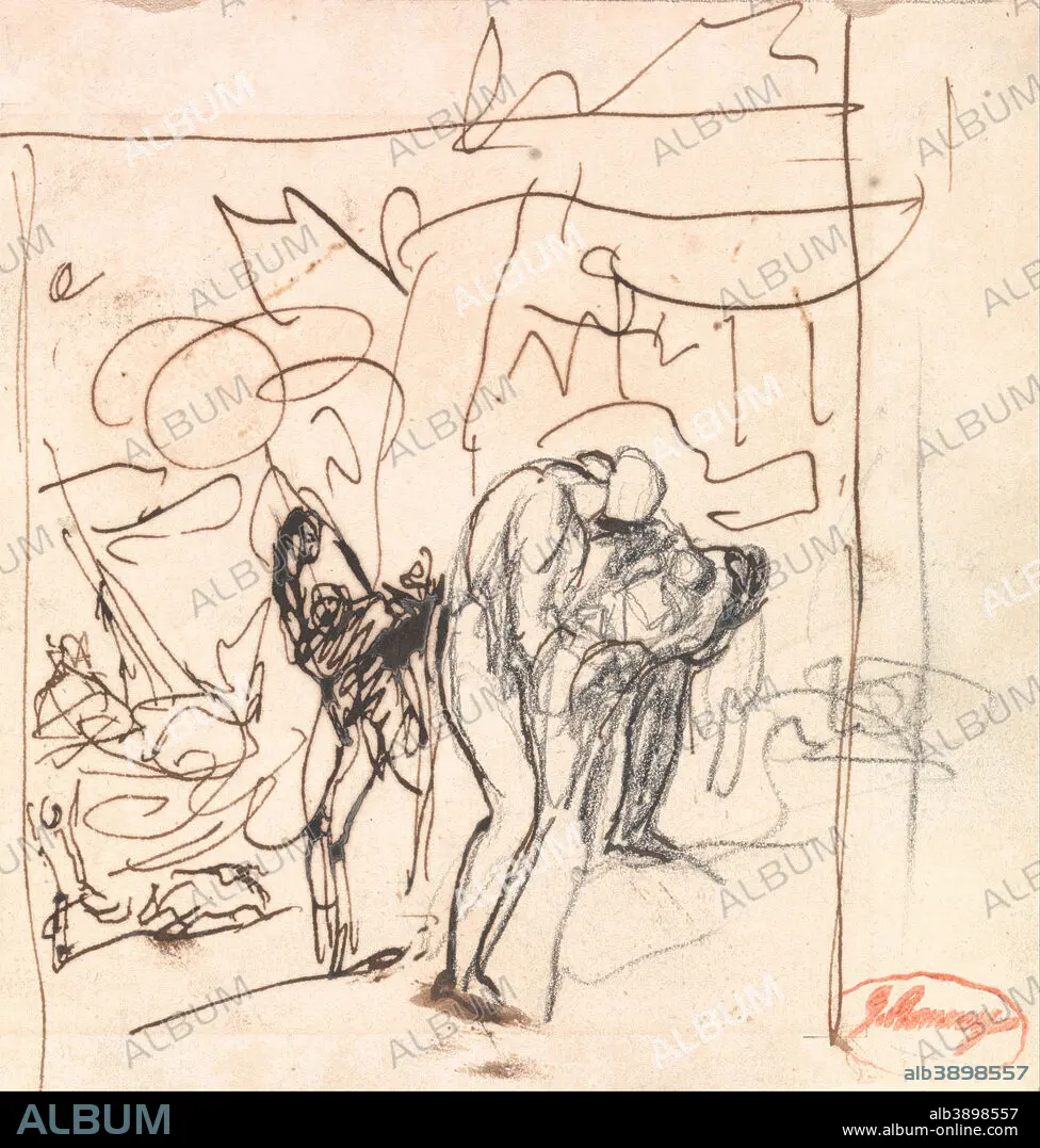 Exit Pursued by a Bear, or "The Abandonment of Perdita" from "The Winter's Tale". Drawing. Brown ink and graphite on medium slightly textured beige wove paper. Height: 143 mm (5.62 in); Width: 137 mm (5.39 in).