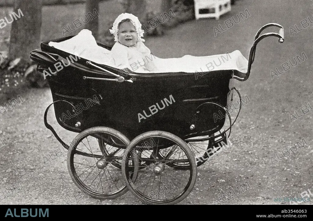 Princess Elizabeth as a baby, at saint Paul's Walden Bury, St Paul's Walden, Hertfordshire, England, home of the Bowes-Lyon family
