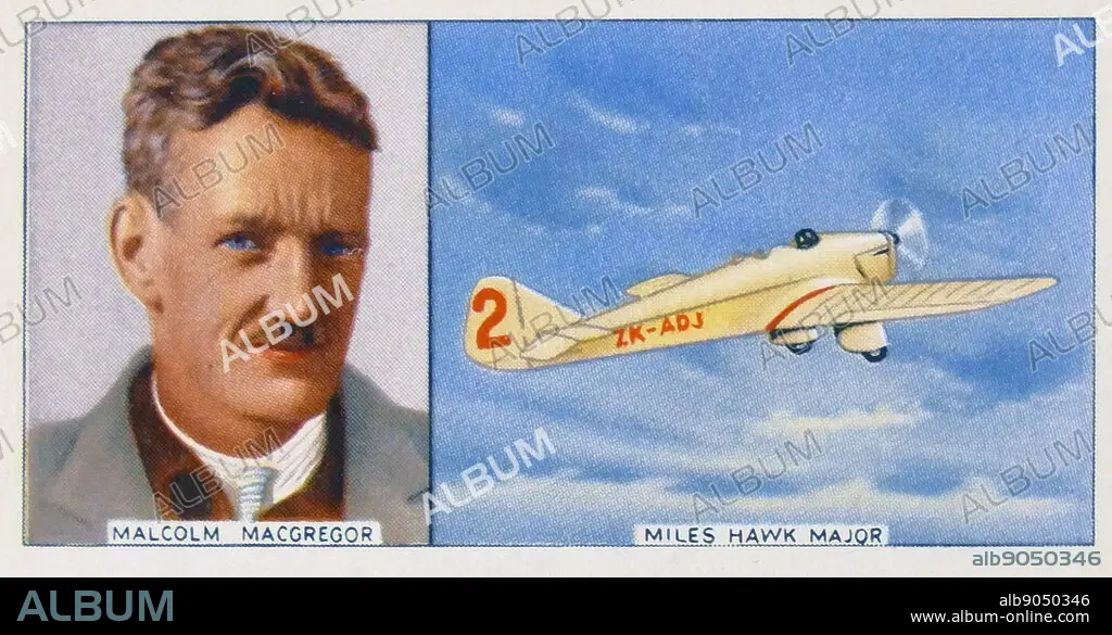 Caption: Illustration depicting Captain Malcolm C. McGregor and his plane Miles Hawk Major. Captain Malcolm C. McGregor (1896-1936) a New Zealand born World War I flying ace. Dated 20th Century