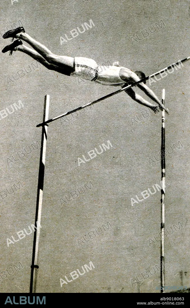 Caption: Photograph of William Waring 'Bill' Miller (1912 - 2008) gold medallist in the 1932 Olympic Pole Vaulting. Miller set a personal best to win vaulting 4.31 meters.