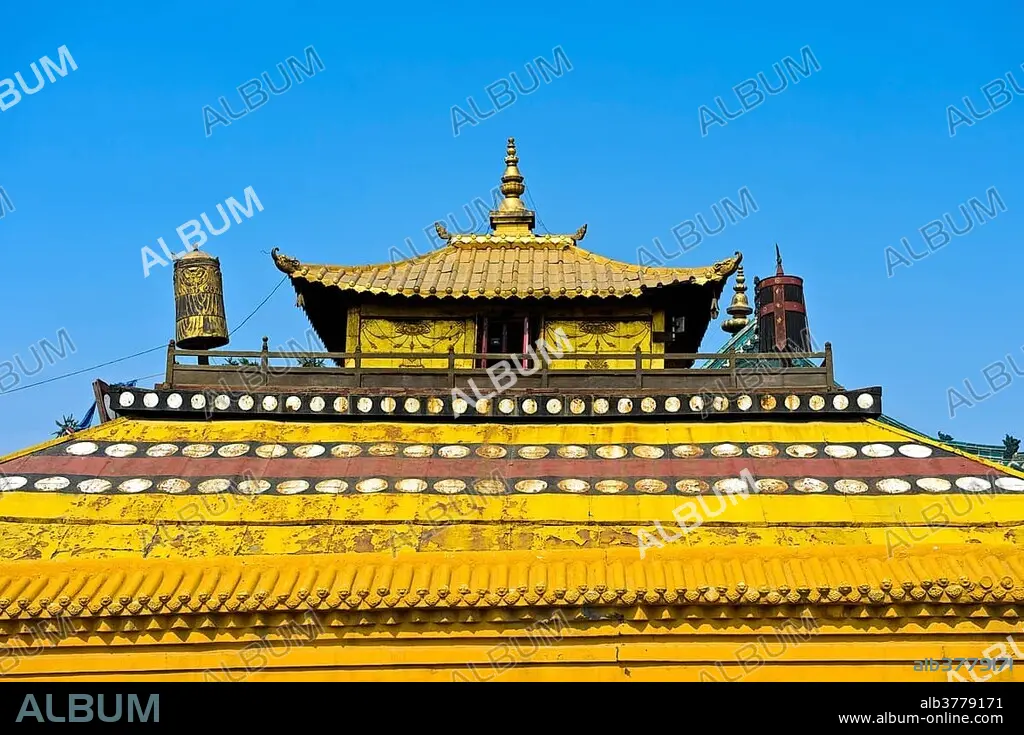Roof of the Golden Temple Gandan Buddhist monastery, Ulaanbaatar, Mongolia, Asia