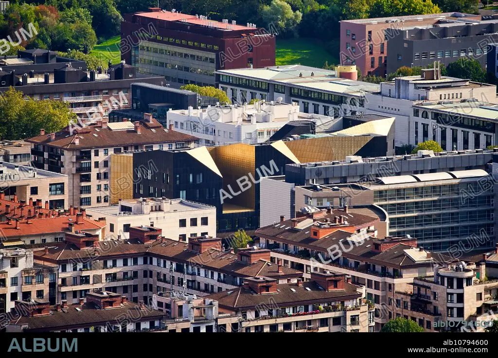 Edificio de Musikene, Conservatorio de Musica, Vista desde el Monte Igeldo, Barrio del Antiguo, Donostia, San Sebastian, Ciudad cosmopolita de 187.000 habitantes, destaca por su gastronomía, playas urbanas y edificios inspirados en la arquitectura parisina, Gipuzkoa, Basque Country, Spain, Europe.