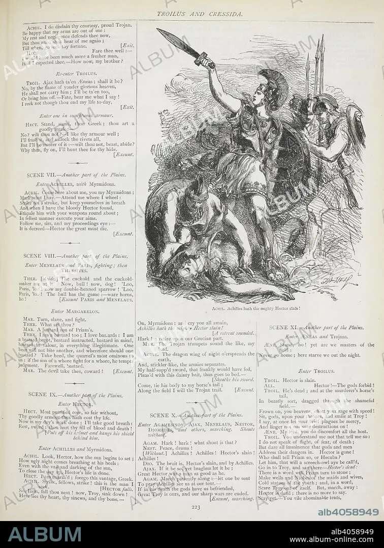 The death of Hector from 'Troilus and Cressida'. Sir John Gilbert's Shakespeare. The Works of Shakespeare, edited by H. Staunton, with ... illustrations by Sir John Gilbert. London : Routledge & Sons, 1882. Source: 11765.g.5, page 223. Language: English.