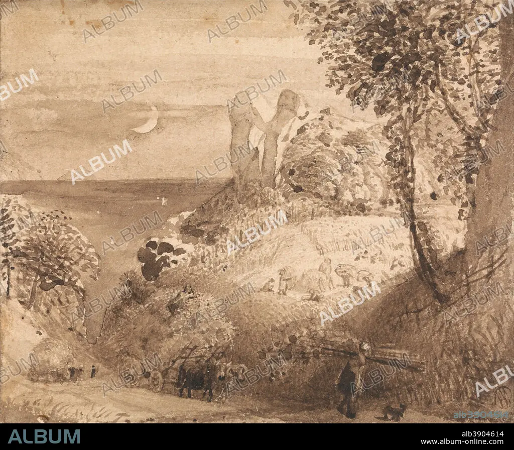 SAMUEL PALMER. A Pastoral Scene. Date/Period: 1835. Painting. Watercolor. Height: 95 mm (3.74 in); Width: 114 mm (4.48 in).