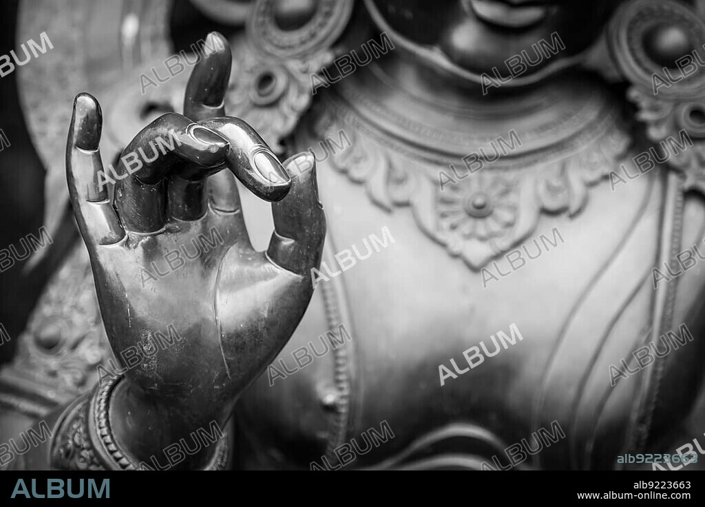 Caption: Karana mudra hand position expresses a very powerful energy with which negative energy is expelled. This hand gesture is also called warding off the evil. You can sense a very determined, focused energy just by looking at this hand gesture