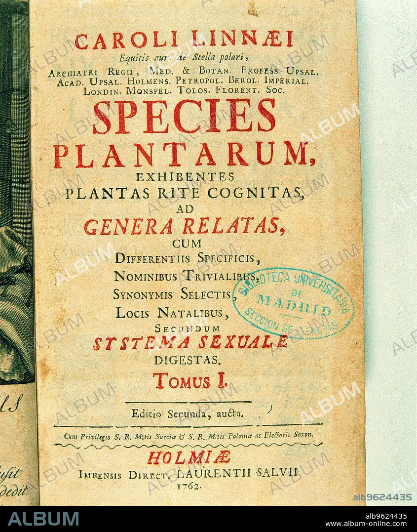 Title page of 'Species plantarum', by Charles Linnaeus, 1762.