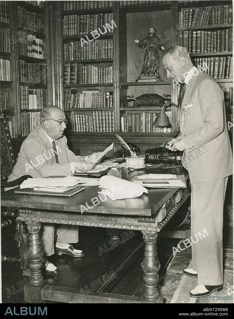 Sada (La Coruña), 1952. Francisco Franco in his office, with his secretary Felipe Polo