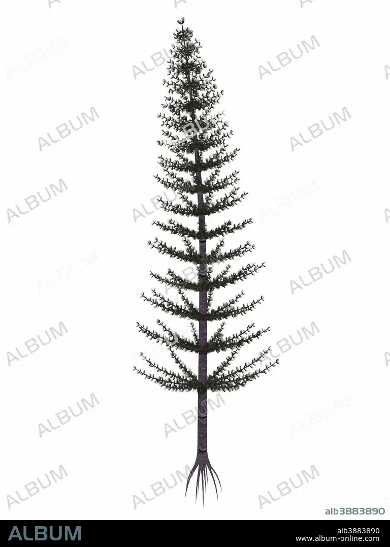 Caption: Calamites prehistoric tree from the Carboniferous and Permian periods, isolated on white background.