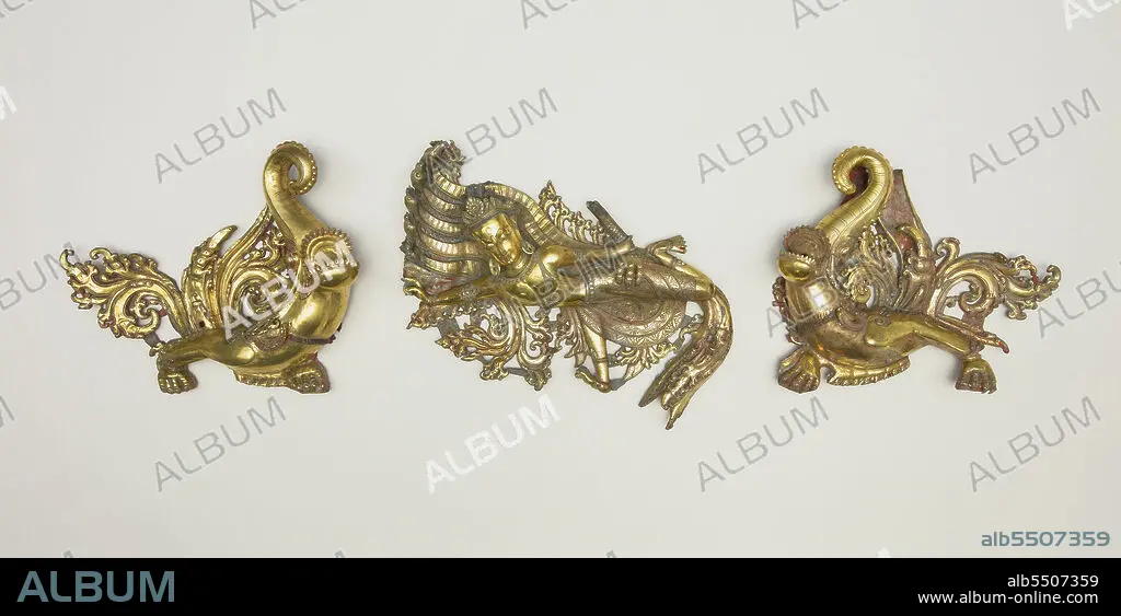 Set of Three Shrine Ornaments with Two Crocodiles (Makara) and a Serpent King...,16th / 17th cent. Creator: Unknown.