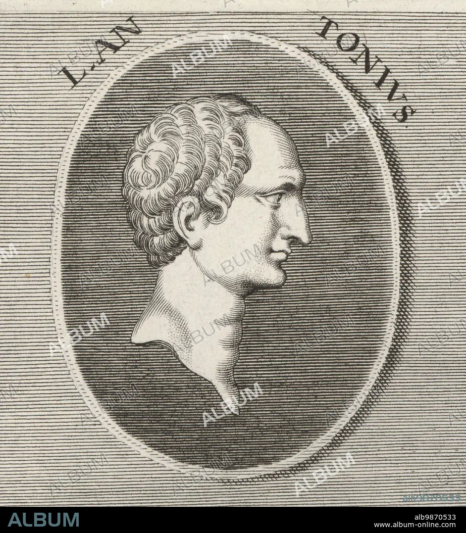 Caption: Lucius Antonius, Roman politician, 1st century BC. Younger brother and supporter of Triumvir Mark Antony. L. Antonius. Copperplate engraving after an illustration by Joachim von Sandrart from his LAcademia Todesca, della Architectura, Scultura & Pittura, oder Teutsche Academie, der Edlen Bau- Bild- und Mahlerey-Kunste, German Academy of Architecture, Sculpture and Painting, Jacob von Sandrart, Nuremberg, 1675.