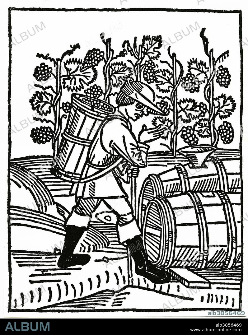 Grape grape harvest, medieval times, woodcut