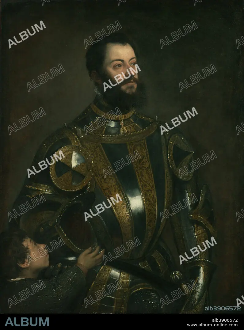 Portrait of Alfonso d'Avalos, Marquis of Vasto, in Armor with a Page. Date/Period: Probably January - February 1533. Painting. Oil on canvas. Height: 1,100 mm (43.30 in); Width: 800 mm (31.49 in).