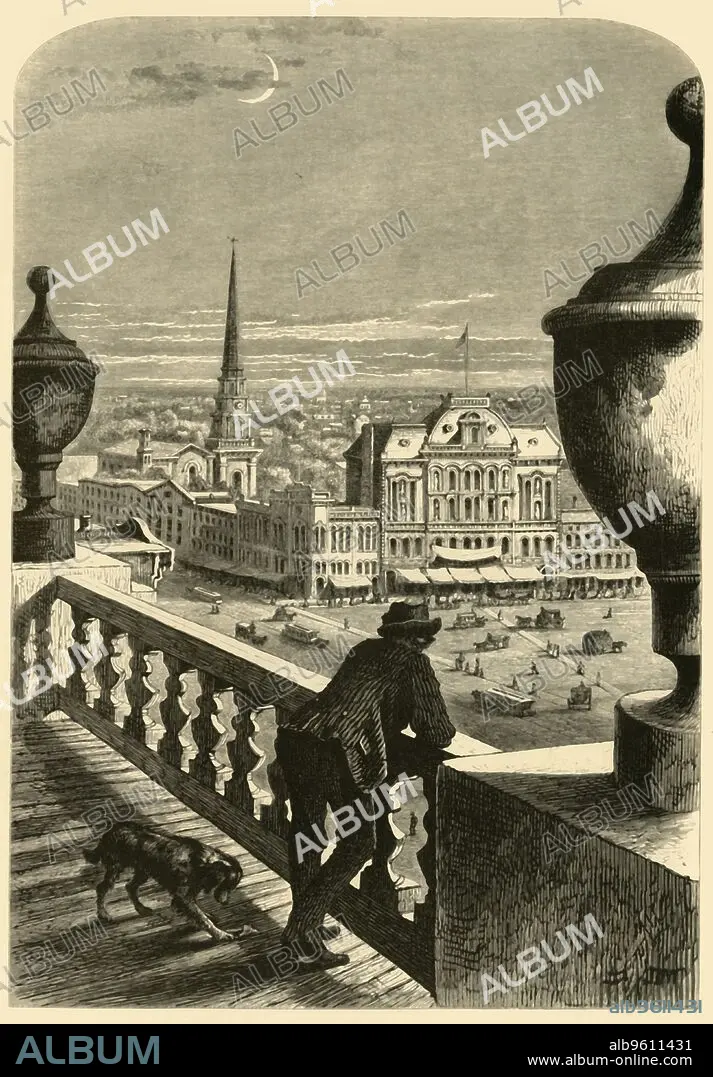 Caption: 'Glance at Detroit from the City Hall', 1872. View of Detroit, Michigan, USA. From "Picturesque America; or, The Land We Live In, A Delineation by Pen and Pencil of the Mountains, Rivers, Lakes...with Illustrations on Steel and Wood by Eminent American Artists" Vol. I, edited by William Cullen Bryant. [D. Appleton and Company, New York, 1872]