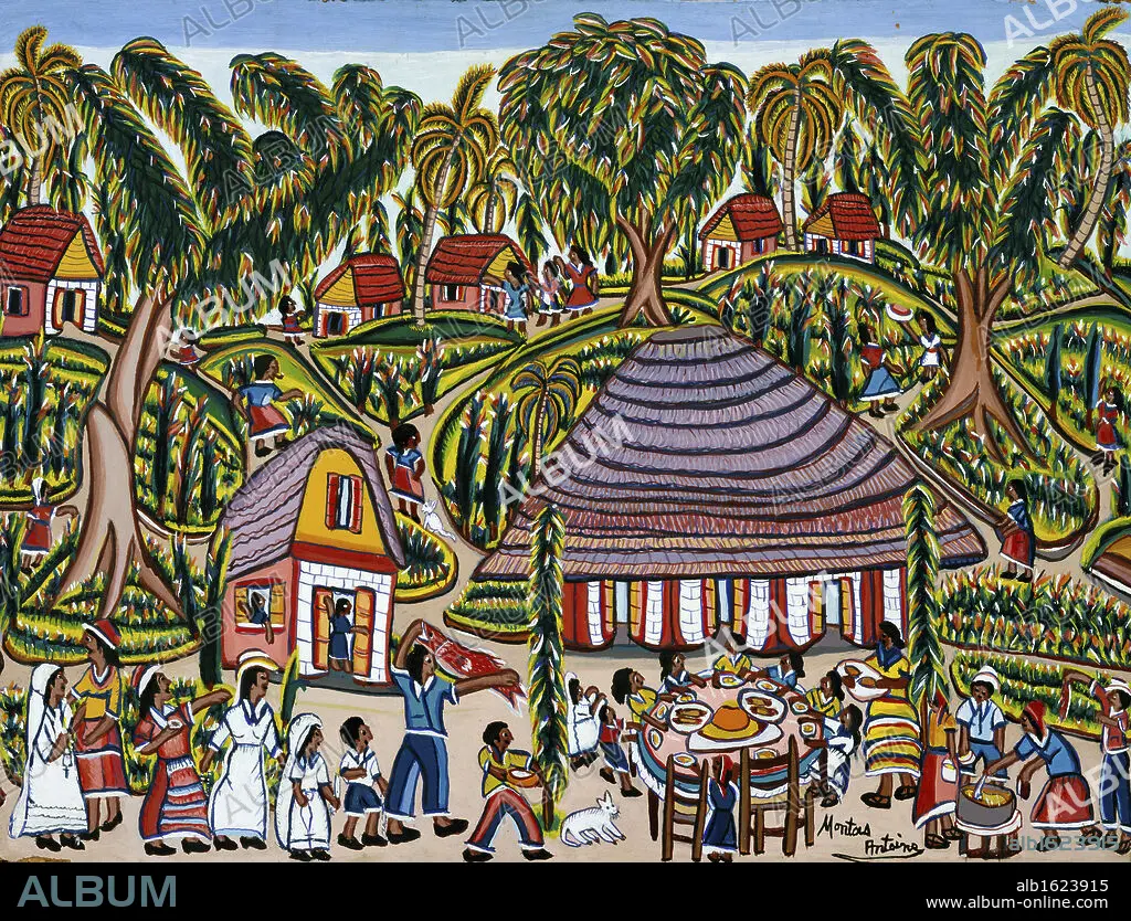 Caption: Communion Celebration by Montas Antoine, oil on board, Private Collection