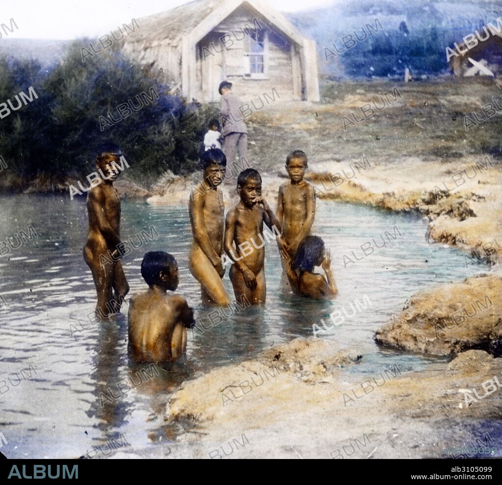Maori boys bathing. Photographer William Henry Jackson 1843-1942), 1895.