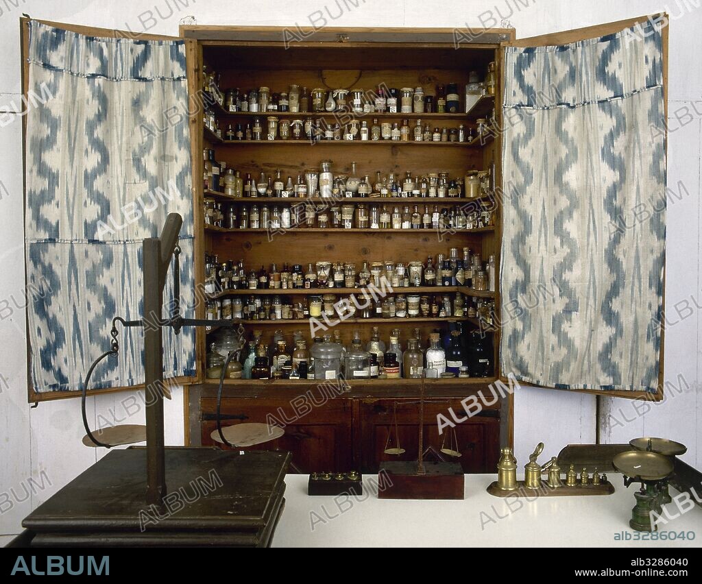 Antique pharmacy with very valuable pieces. 16th-18th century. The Monastery of Vallbona de les Monges. Catalonia, Spain.