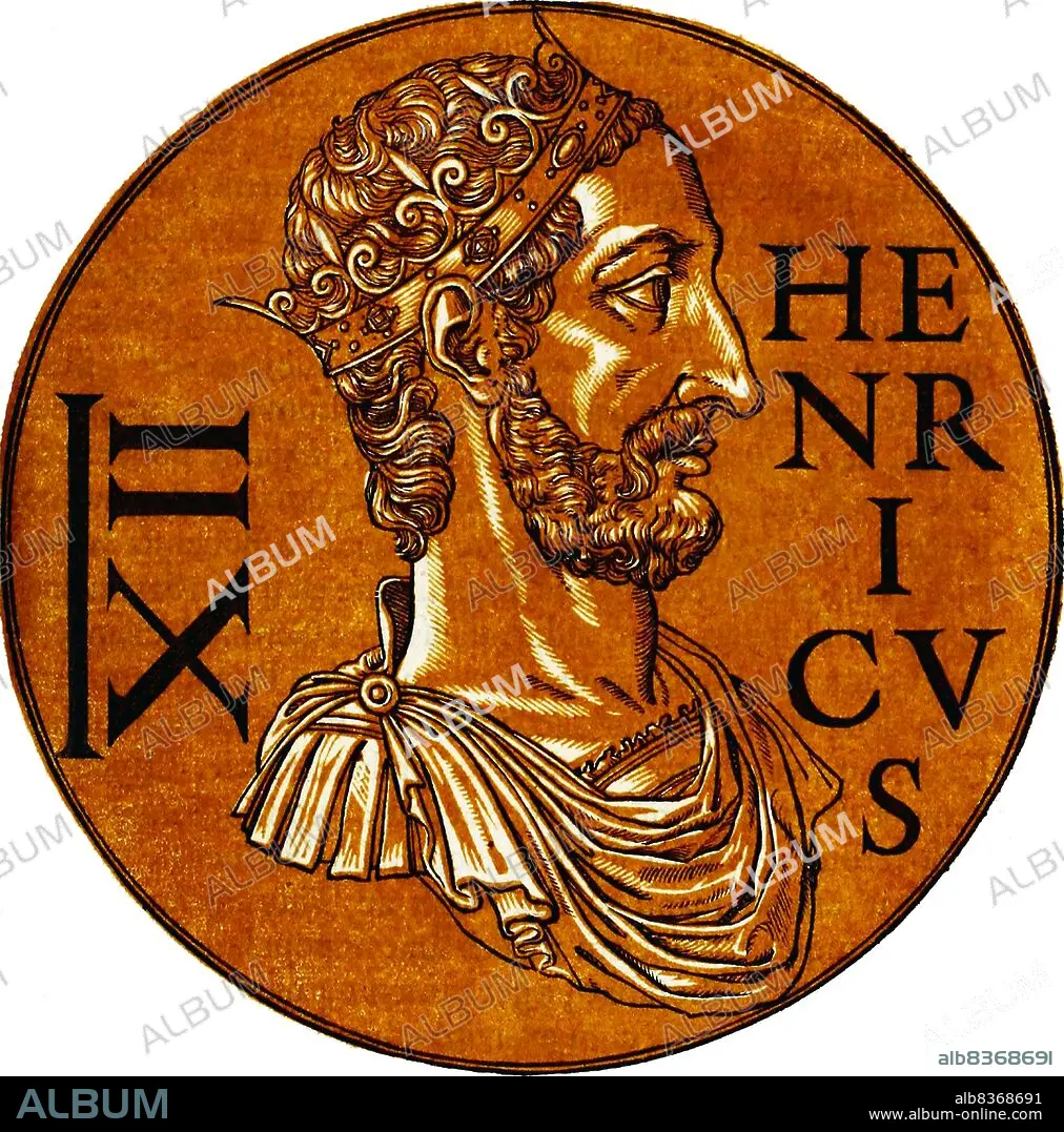 Title: Germany: Icon of Henry I (876-936), King of East Francia, from the book Icones imperatorvm romanorvm, ex priscis numismatibus ad viuum delineatae, & breui narratione historica< / i>,1645