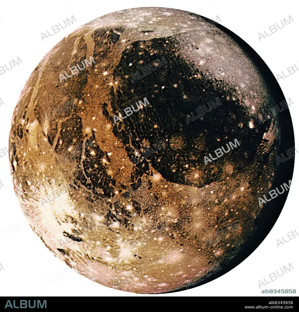 Caption: The largest natural satellite in the solar system, Ganymede, has a frozen surface covering a rocky core.