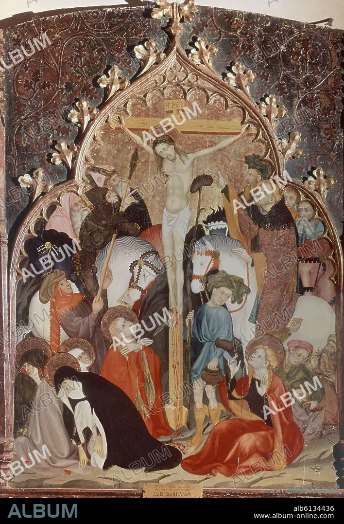 LLUIS BORRASA (1360-1426). RETABLO DE SANTA CLARA - 1414 - CRUCIFIXION DE JESUCRISTO - PINTURA GOTICA
