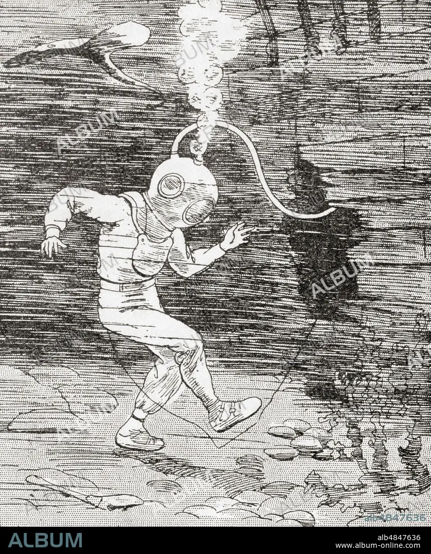 A deep sea diver in thge 19th century. From The Strand Magazine, published January to June, 1894.