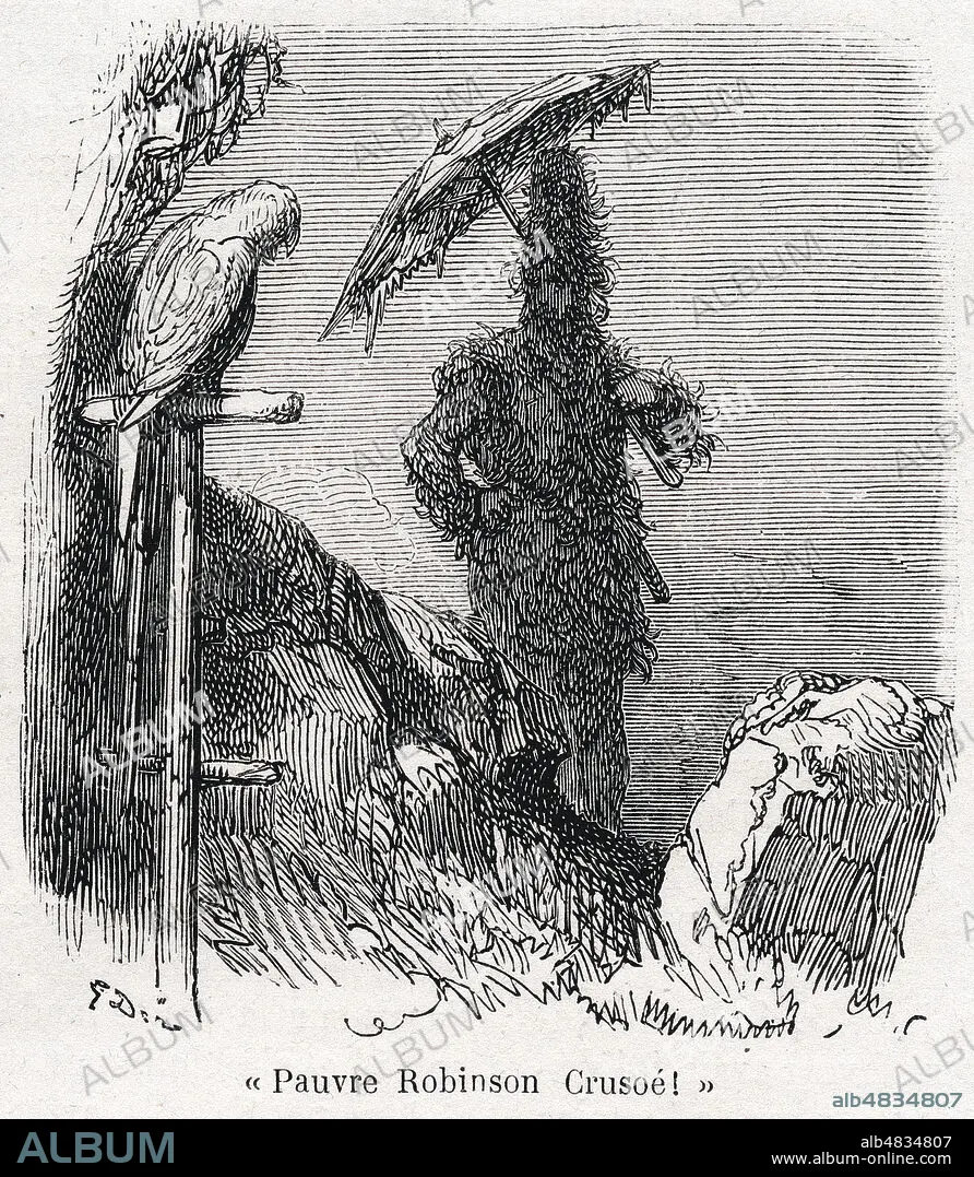Pauvre Robinson Crusoe!. Illustration de Gustave DORE (1832-1883) pour Les aventures d'Ebenezer Scrooge (Christmas Carol) de Charles DICKENS (1812-1870) repris dans La Semaine des Enfants du 11 avril 1866. Credit : Collection Jonas/KHARBINE-TAPABOR