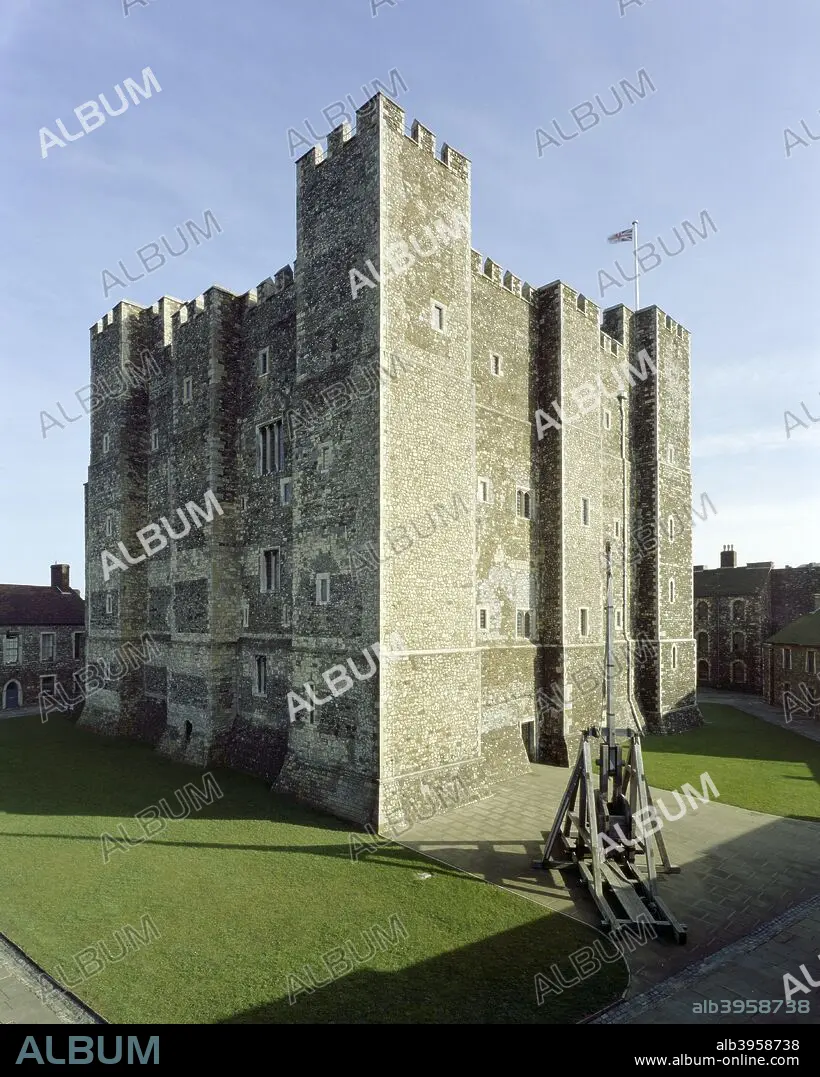 Caption: Dover Castle, Kent, c1990-2010. An exterior view of the keep built by Henry II during the late 12th century. Medieval castle in Dover, Kent, founded in 11th century and described as the Key to England due to its defensive significance.