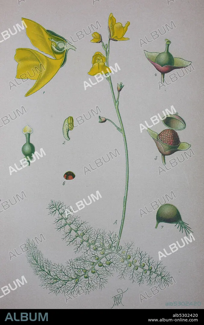 Utricularia vulgaris, greater bladderwort, common bladderwort / Gewöhnliche Wasserschlauch, Utricularia vulgaris, Gattung der Wasserschläuche, Digital improved reproduction of an original print from the 19th century / digitale Reproduktion von einer Originalvorlage aus dem 19. Jahrhundert.