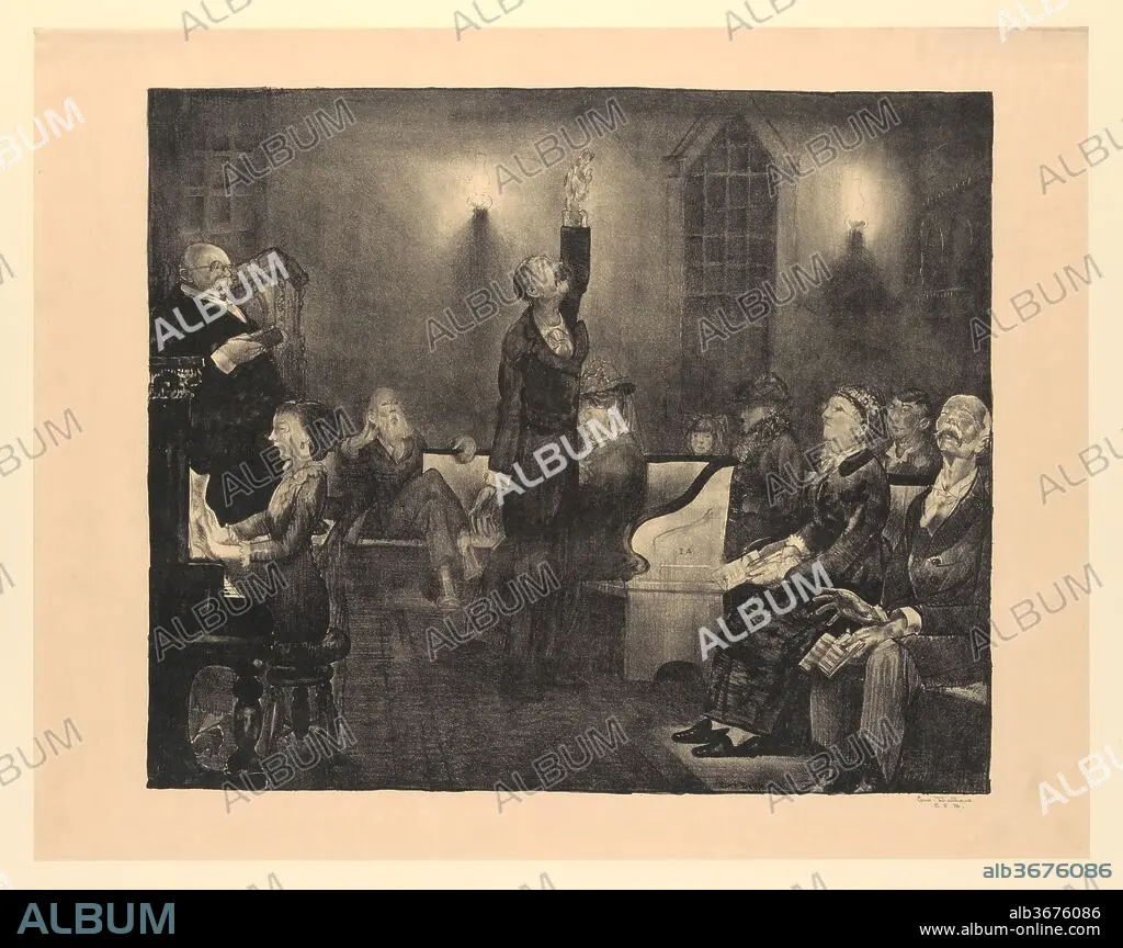 Caption: Prayer Meeting, Second Stone. Artist: George Bellows (American, Columbus, Ohio 1882-1925 New York). Dimensions: image: 18 1/2 x 22 3/8 in. (47 x 56.8 cm)